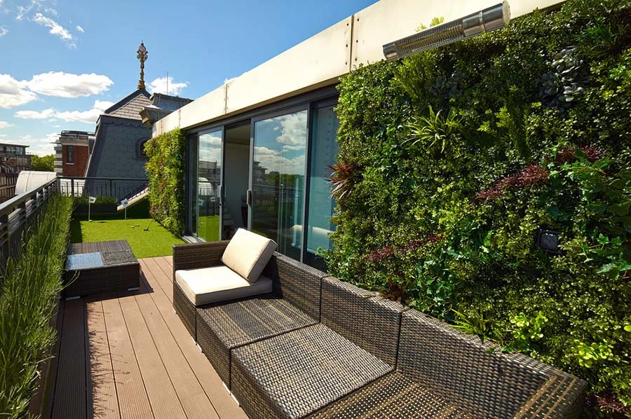 - Integración de vegetación en paredes, techos y barandillas de terrazas.