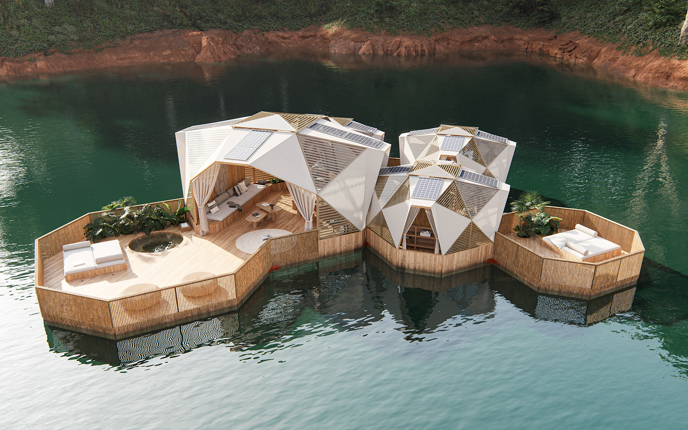 - Villas flotantes de lujo: propiedades amplias, con múltiples habitaciones, terrazas, piscinas y sistemas inteligentes de confort. Son comparables a mansiones sobre tierra, pero con la experiencia única del agua alrededor.